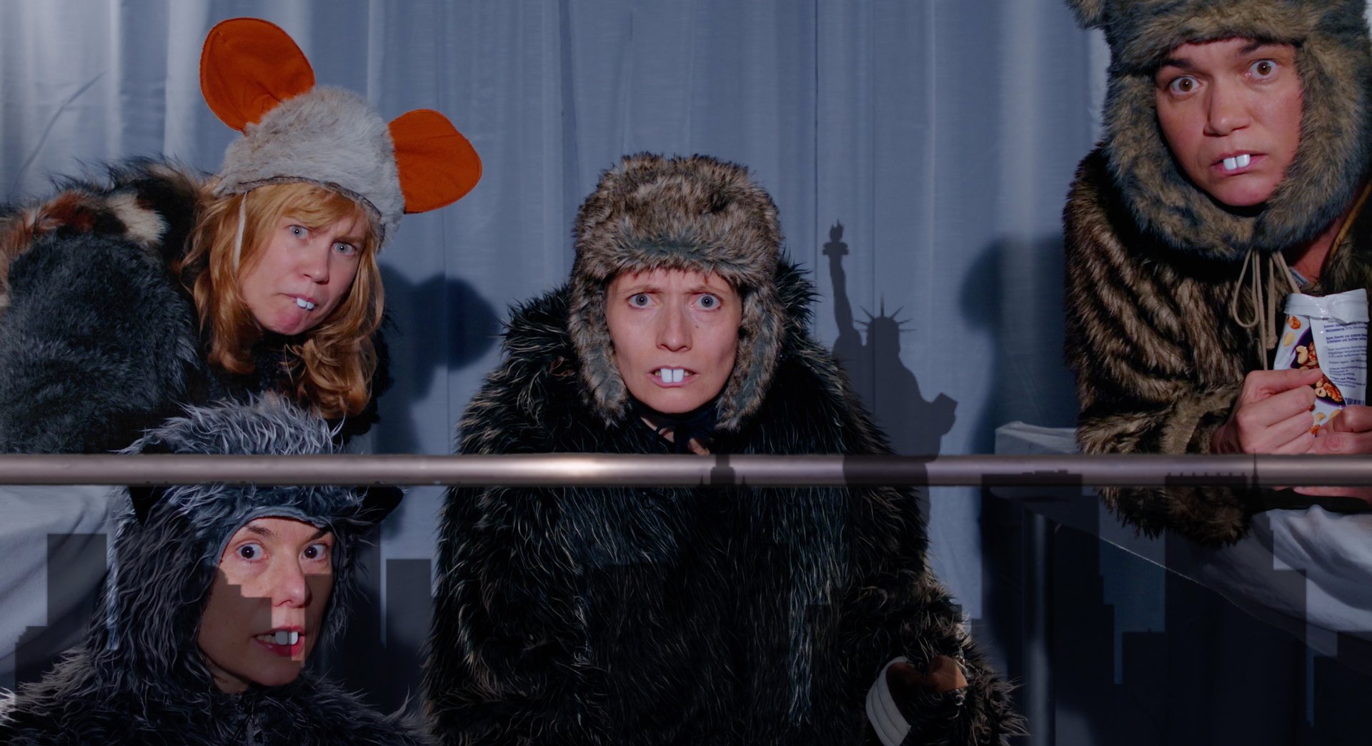 Vier Zugreisende – sind es Menschen, sind es Tiere? – begegnen sich im Schlafwagenabteil. Sie lernen sich kennen, sie richten sich ein, sie teilen ihre Leckereien. Ihr Reiseziel, so merken sie, ist das gleiche: Muriel, Eddie, Igor und Siggi sind Winterschläfer:innen. Sie fahren nach Norden, nach Spitzbergen, dorthin, wo es noch nicht so heiß ist, wo man trotz Klimawandel noch schlafen kann, möglichst einen ganzen Winter lang. Bevor sie dort ankommen, gilt es jedoch sich vorzubereiten, sich ordentlich Polster anzufuttern, damit sie die ersehnte lange kühle Nacht überstehen können. Obacht! Bloß nicht zu früh in den Schlaf fallen! Bloß nicht zu früh den Organismus herunterfahren, den Herzschlag auf acht oder fünf pro Minute senken. Sonst reichen die Fettdepots nicht. Die Utopie des tiefen Schlafs hat ihren Preis: Sie verlangt Wachsamkeit. Fürs Erste dürfen die vier felligen Fahrgäste höchstens ein wenig schlummern oder dösen. Man muss aufpassen, sich beschäftigen! Probleme, die einen wachhalten, könnten eine gute Lösung sein. Und geht in dem Zug eigentlich alles mit rechten Dingen zu?? Derweil huscht die Landschaft am Fenster vorbei, die Reise zum Nicht-Ort des Tiefschlafs wird zur filmischen Erfahrung, zum flimmernden Traum alarmierten Wachseins. Werden die vier Menschentiere jemals ihre Zuflucht, ihren Bau erreichen? Ein Railroadmovie, ein Kammerspiel.