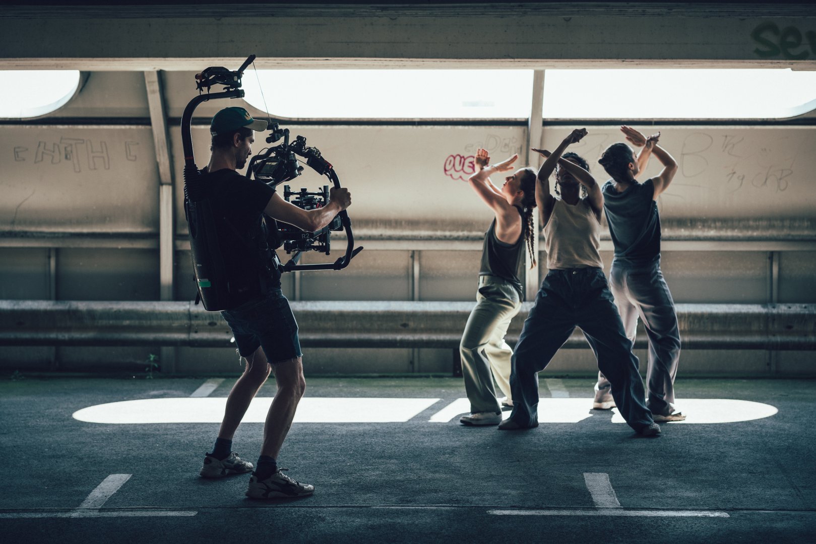 Opferschicht, das ist diese Klebefolie auf den Fenstern der U-Bahn. Sie ist dort angebracht, weil Leute Wörter und Namen in die Scheibe kratzen. Um die Schrift wieder zum Verschwinden zu bringen, wird diese Schicht geopfert. Wer hat die Stadt gebaut, wer bewohnt sie, wer nutzt sie ab? Die ganze Stadt ist voller Spuren. Fasse in dieser Stadt eine Oberfläche an und spüre die Kratzer ganzer Generationen. Sie sind die Narben und die Buchstaben des Stadtkörpers, die jedoch häufig als Lärm und visuelle Verschmutzungen wahrgenommen werden. Inspiriert von der “Jazzstylecorner”-Bewegung und der Berliner Graffiti-Szene arbeitet der Choreograf Kadir “Amigo” Memiş seit 2005 an dem Berührungspunkt zwischen Schrift und Tanz. In der Tanzperformance “Opferschicht” untersucht er die urbane Kulturpraxis “Scratchiti” – das Einkratzen von Schriftzügen in die Zwischenräume der Stadt – und bringt sie mit speziellen “Popping”-Techniken in Verbindung. Dabei sucht er nach choreografischen Darstellungen, um die Sehnsüchte des Schreibens, sowie dessen physikalische Vorgänge, zu vergegenwärtigen, bei denen menschliche und nicht-menschliche Körper ineinandergreifen. Künstlerische Leitung, Choreografie: Kadir “Amigo” Memiş / Von und mit: Paris Crossley, Rocio “Pez” Becerra, Maren “Funky Mae” Wittig / Filmregie, Editor: Rain Kencana / Dramaturgie: Dandan Liu / Choreographische Mitarbeit: Joy Alpuerto Ritter / Musik und Komposition: Miguel Toro / Szenografie: Jaybo Monk / Kostüm: Judith Adam / Regiemitarbeit: Lara Erse Keller / Künstlerische Beratung: Gizem Aksu / D.o.P: Moritz Carstens / Kamerassistenz: Nortey Buschke / Texte: Lukas Fuchsgruber / Dank an: AKIM / Thomas “ZAST” Bratzke / Produktionsleitung: Francesca Spisto