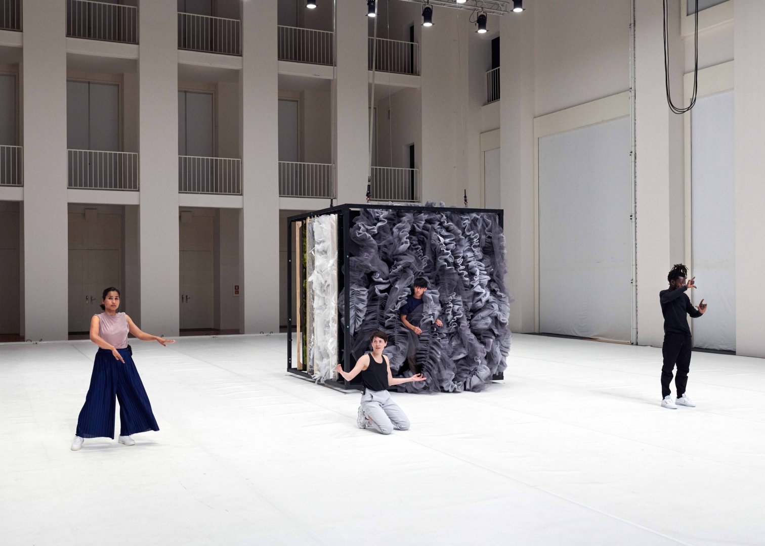In der DDR lebte jede:r Vierte im Plattenbau. Und wer nicht dort lebte, kannte jemanden aus der »Platte«. Galt sie zu DDR-Zeiten noch als begehrter, moderner Wohnraum, verschlechterte sich ihr Ruf in Deutschland spätestens mit den im kollektiven Gedächtnis eingeschriebenen Bildern der rechtsextremen Anschläge in Rostock und Hoyerswerda. Für die einen stehen Plattenbauten heute für Tristesse und sozialen Abstieg. Die anderen verteidigen diese Art zu wohnen und damit auch die eigenen Biografien und Erinnerungen. Wegen der Einfachheit des modularen Bauens sind die Gebäude weltweit verbreitet. Kann die häufig als hässlich diskreditierte Art zu bauen daher eine Art ästhetisches Bindeglied zwischen Erfahrungen an verschiedenen Orten sein? Die Koproduktion von Regisseur Maximilian Hanisch und Bühnenbildnerin Sarah Methner widmet sich dieser modernen Bau- und Lebensform im Rahmen einer Theaterperformance. Auf der Bühne kommen vier Performer:innen zusammen, deren Begegnung die Grundsituation der Inszenierung bildet. Das internationale Ensemble erzählt gemeinsam die verwobene Geschichte von Orten, die für die Idee des Plattenbaus relevant sind: Moskau, Sansibar City, Kabul und Weimar. Sarah Methner und Maximilian Hanisch wurden beide kurz vor der Wende in Ost-Berlin bzw. Dresden geboren. Die DDR prägte zwar ihre Identität, das Land selbst kennen sie aber nur aus Erzählungen. So entstand die Idee, etwas scheinbar genuin Ostdeutsches zum Zentrum ihrer Inszenierung zu machen. In der Recherche tauchten dann Platten in immer neuen Variationen und Ländern auf. Die bildstarke Inszenierung arbeitet mit einem internationalen Team und fragt: Kann die weltweite Austauschbarkeit und Ähnlichkeit der Plattenbauten eine Chance sein, Heimat und Identität neu zu denken und Geschichte länderübergreifend zu schreiben?