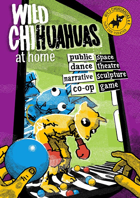 Für Wild Chihuahuas at Home werden Performer:innen eine Woche lang gemeinsam mit lebensgroßen Figuren in einem mobilen Zimmer mit vielen Fenstern leben. Fußgänger:innen können, wie Voyeur:innen, in die „geschützte“ Privatsphäre des Zimmers hineinschauen und durch spielerische Elemente beeinflussen, was in dem Zimmer passiert. Das Projekt untersucht das Gefühl der Sicherheit und das Gefühl der Gefahr im eigenen zu Hause und wie diese Gefühle die eigene Körperwahrnehmung beeinflussen oder gar verändern. Die Ästhetik für Wild Chihuahuas at Home ist von Comics und Cartoons inspiriert, die sich mit einem naiven und handgemachten Stil auf verschiedene stilisierte Bewegungsdisziplinen wie physisches Theater, Tanztheater, Körperpuppenspiel und Maskenspiel beziehen. Wild Chihuahuas at Home ist für ein Publikum ab 6 Jahren geeignet. Tänzer*innen: Alessandra Lola Agostini, Christina Wüstenhagen Musik, Sounddesign: Jack Fletcher (Missing Reels) Figurenbau: Piet Koenekoop Maskendesign: Wintercroft Choreographie, Kostüm: Jara Serrano Dramaturgie, Spielgestaltung, Figuren: Pelle Ask Idee, Szenographie: Pelle Ask, Jara Serrano Produktion: Katja Zeidler Kreativer Support, Beratung: Grant Howitt, Chris Taylor, Jack Pullman Das Projekt wird gefördert vom Hauptstadtkulturfonds, der Senatsverwaltung für Kultur und Europa-Berlin, Fond for lyd og bilde (NO), SPENN (NO) und Norsk kulturfond (NO).
