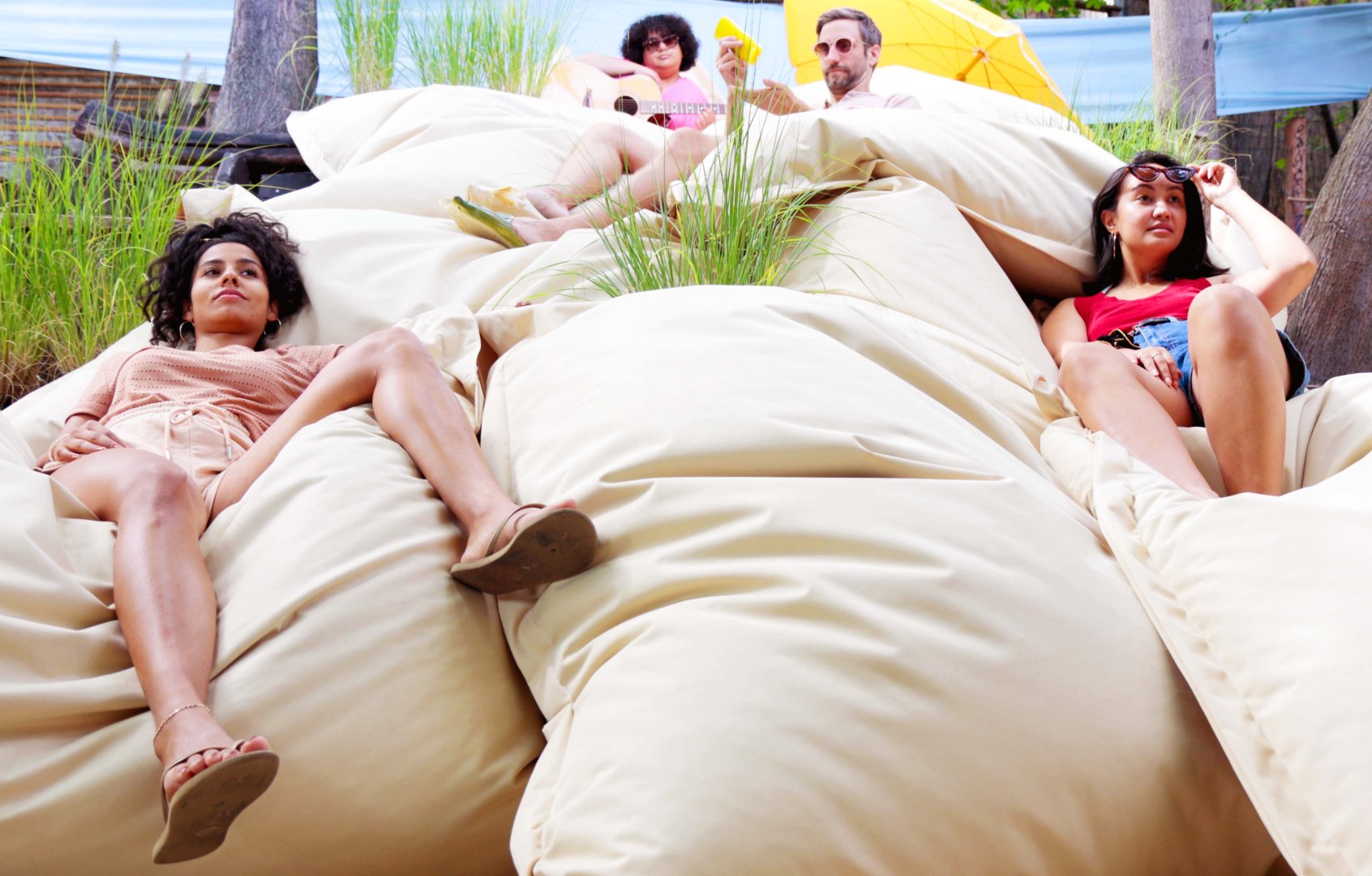 Willkommen im Prerower Beach-Club: Mitten im Wedding verwandelt sich der Humboldthain Club in eine spätsommerliche Idylle an der Ostseeküste. In Wellen brandet der Sound vorbeirauschender S-Bahnen ans Ohr, Wind bläst durch die Dünenlandschaft. Mit den Füßen im warmen Sand und einem kühlen Drink in der Hand ist das Publikum eingeladen zu einem Reenactment: In seinem Dokumentarfilm »Barfuß und ohne Hut« portraitierte Jürgen Böttcher 1964 »Junge Leute« (so der damalige Arbeitstitel) mit ihren Zukunftsvisionen im Freiraum zwischen Schulzeitende und Ausbildungsbeginn. Im Zusammenspiel mit sechs Performer:innen gleicht das Publikum Szenen des Films mit eigenen beruflichen Hoffnungen und Wünschen ab. Mit Musik, im Rausch, in Bewegung, aber auch in Entspannung formulieren sie ihre Vorstellung vom Leben nach der Schule: Wie sieht der Einstieg in die Arbeitswelt aus? Welche Erwartungen, Ängste und Widerstände sind damit verbunden? Und welche Strategien zu mehr Selbstbestimmung bei der Berufswahl lassen sich gemeinsam entwickeln? Künstlerische Leitung & Performance: Sebastian Mauksch | Text & Performance: Antigone Akgün | Video & Performance: Josephine Fabian | Szenografie & Kostüme & Performance: Vera Pulido | Musik & Sound & Performance: Conrad Rodenberg | Assistenz & Performance: Serkan Ünsal | Outside Eye: Jutta Wangemann | Theaterpädagogik: Soraya Reichl, Lea Sherin Kübler | Video Liveschnitt: Marius Bratoveanu | Licht & Technische Leitung: Fabian Eichner | Produktion: Miriam Glöckler Sebastian Mauksch & Team inszenieren partizipatives Theater für Kinder & Jugendliche. Mit dem Ballhaus Ost entstanden u.a. »Ich lieb dich nicht, du liest mich nicht – aha« und »Fennymore oder wie man Dackel im Salzmantel macht« (eingeladen zum AUGENBLICK MAL! – Das Festival des Theater für junges Publikum sowie zu WILDWECHSEL – Das Kinder- & Jugendtheaterfestival im Osten Deutschlands).