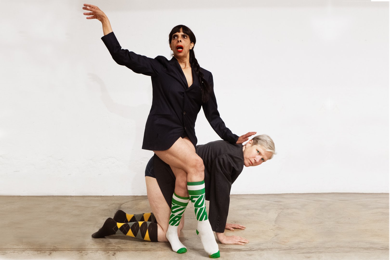 Das Duett „Cavalier impurs“ (Verstörte Reiter) ist ein Cabaret in einer riesigen, aufgeklappten Pappschachtel. Eine Collage, die fröhlich und ungeniert eine Vielzahl von Genres überschreitet. Das Stück feiert Tanzkunst, Coverversion und Dragshow, es zeigt den Tanz der Menopause und auf die schiefe Bahn geratene Performance Kunst. Von Nummer zu Nummer beschwört das Zweigespann eine Schar ehrwürdiger Persönlichkeiten herauf, die nach und nach die Bühne bevölkern. „Cavalier impurs“ setzt eine Serie von Duetten fort, die Antonia Baehr mit mehreren Künstler*innen entwickelt hat, darunter Latifa Laâbissi (Consul and Meshie, 2018). Auch die Kooperation mit der Bühnenbildnerin Nadia Lauro wird fortgesetzt.