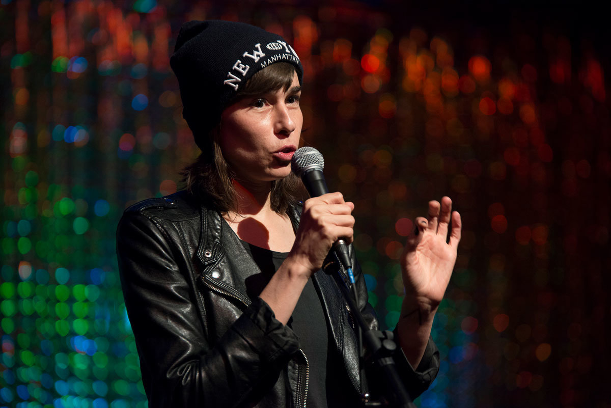 The Bitter End ist ein Stand-Up-Act auf einer Theaterbühne.